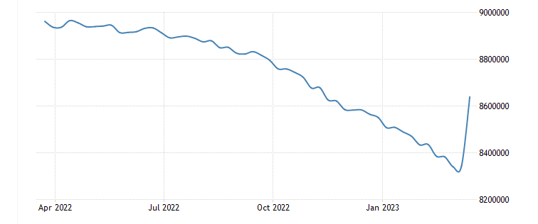 In the labor market, the most recent report showed a cooling in wage growth, an increase of 0.2% MoM in February. Nevertheless, the US continues creating new positions rapidly, indicating further price pressures.