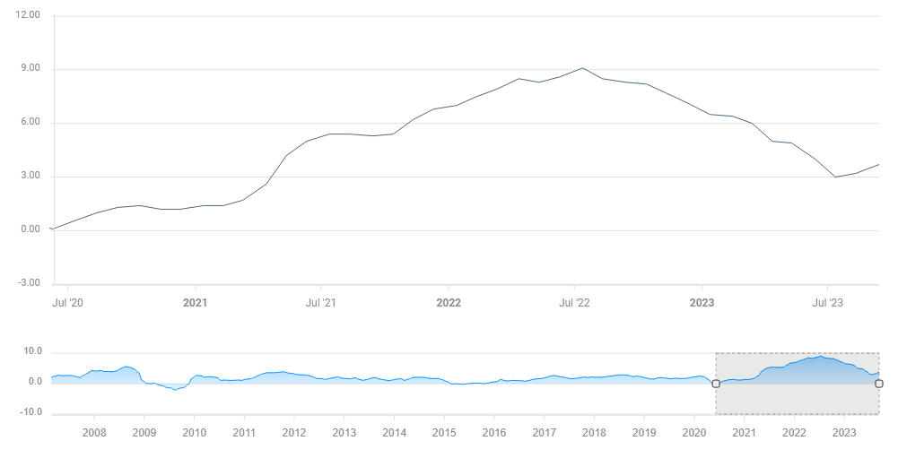 The Federal Reserve increased interest rates to a range of 5.25%-5.50%, but has been tapering down the pace of hikes, pausing in June for the first time in over a year. It then raised borrowing costs in July, in what seems like an unofficial shift to hiking every other meeting for the remainder of the year.