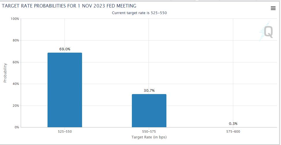 - The Federal Reserve is widely expected to leave its rates unchanged at 5.25%-5.50% and signal a hike in November.