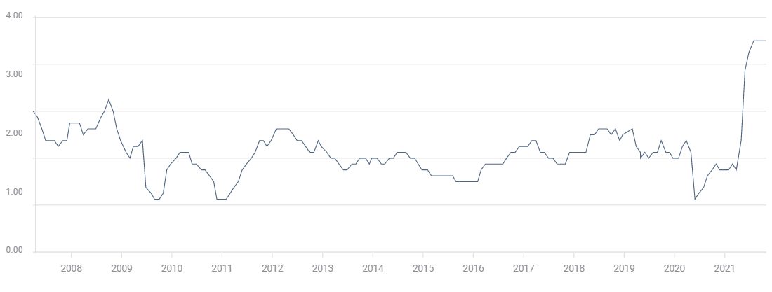 A small change in the wording around inflation highlights the Fed’s rising concern over prices. In September the FOMC statement said, “Inflation is elevated, largely reflecting transitory factors.”