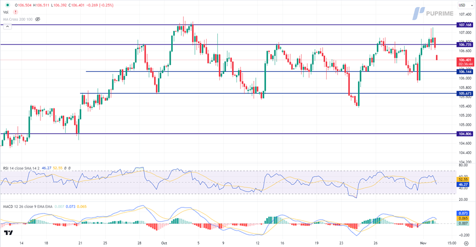Resistance level: 106.75, 107.15.