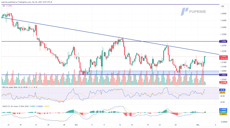 Despite a surge in yesterday's trend, the Cable is still trading below its long-term downtrend resistance level. The RSI is approaching the overbought zone while the MACD has broken above the zero line, suggesting the bullish momentum is forming.