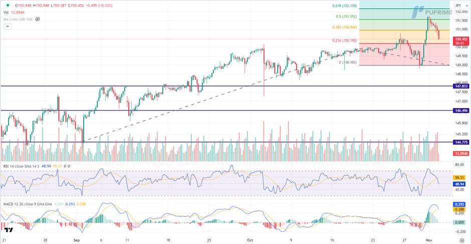 Resistance level: 150.95, 151.55.