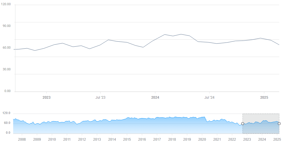 Friday, 14:00 GMT. The University of Michigan's Consumer Sentiment Index plunged to 64.7 in the revised figure for February, pointing to an increase in worries. The upcoming preliminary release for March is set to edge down to 64, but it could retreat further.