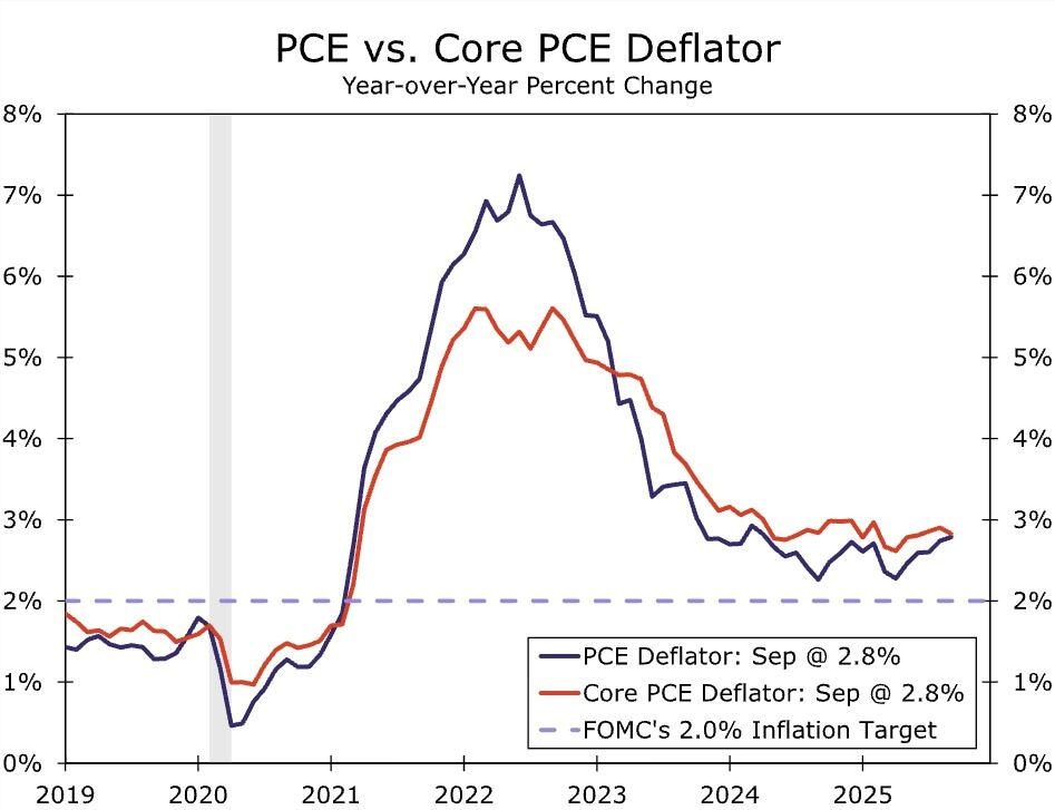The dispersed views on the best course of action reflect the tricky environment the FOMC finds itself in. The FOMC did not have several key readings on the economy as originally scheduled due to the government shutdown (e.g., Q3 GDP, Oct. & Nov. Employment Situation and CPI, etc.). But, the latest data available continue to indicate some tension in the Committee’s employment and inflation mandates (Figures 1 & 2).