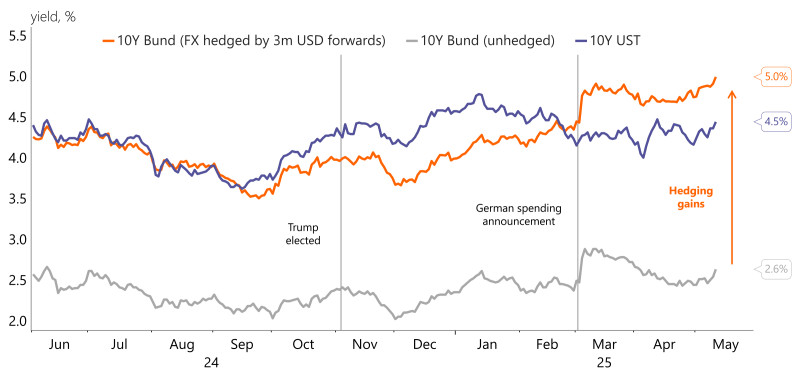 On an FX-hedged basis, Bunds offer attractive yields to USD-denominated investors