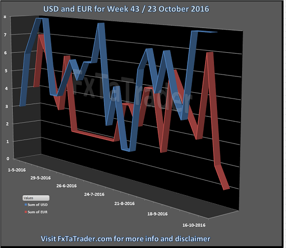 Here below you can see the Weekly Currency Score Chart of the USD and EUR with 6 months data as a reference.