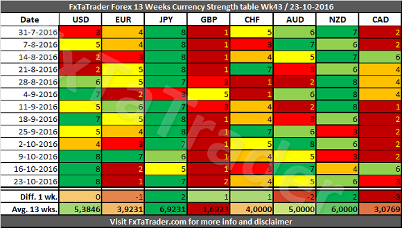 Forex Strength and Comparison for Week 43/2016