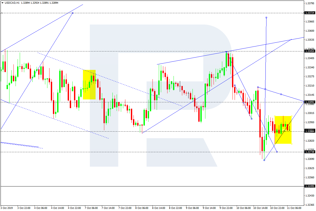 After breaking the consolidation range to the downside, USDCAD has fallen towards 1.3273. Today, the pair may start another correction to reach 1.3309 and then form a new descending structure towards with the target at 1.3289.