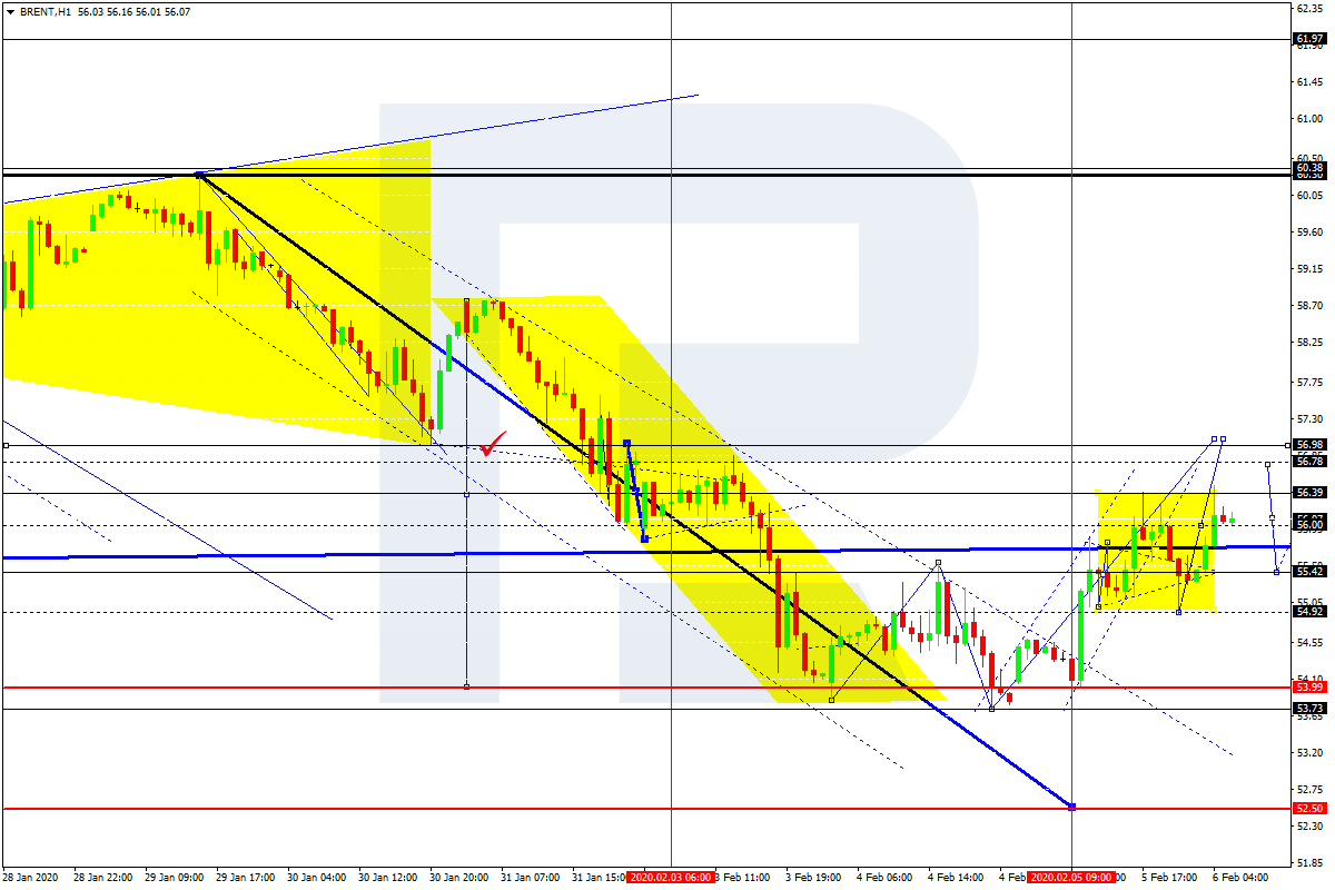 Brent is moving upwards. Possibly, the pair may reach 56.98 and then start another correction with the target at 55.45.