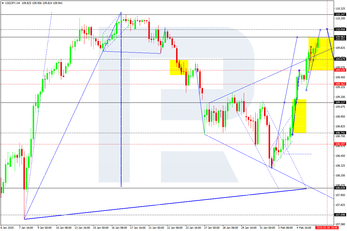 USD/JPY is moving upwards. Possibly, today the pair may grow to reach 110.05. After that, the instrument may form a new descending structure to break 109.50 and then continue the correction with the target at 109.12.