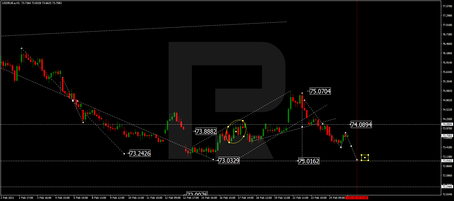 USDRUB is still moving downwards to reach 73.00. After that, the instrument may start a new correction to the upside with the target at 74.00.