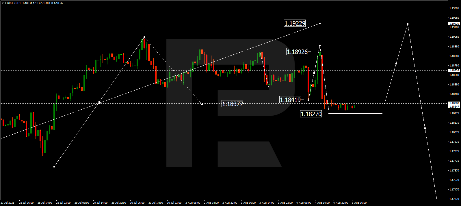 The currency pair completed a link of growth to 1.1892 and dropped to 1.1838. Today the market is trading in a narrow range at these lows. We expect the range to extend to 1.1827, then another wave of growth to develop to 1.1922.