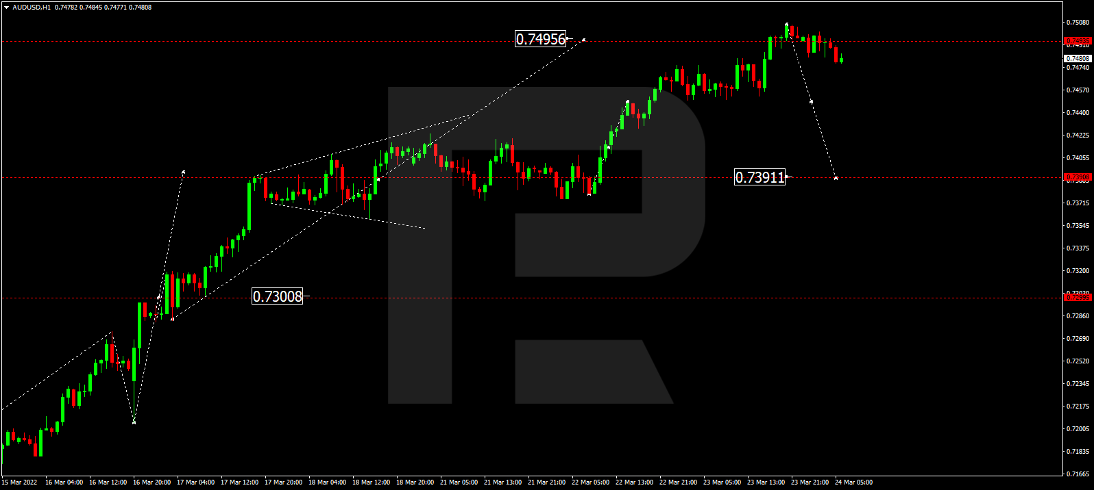 AUD/USD is falling towards 0.7390 and may later start a new growth to reach 0.7440. After that, the instrument may resume trading downwards with the target at 0.7299.