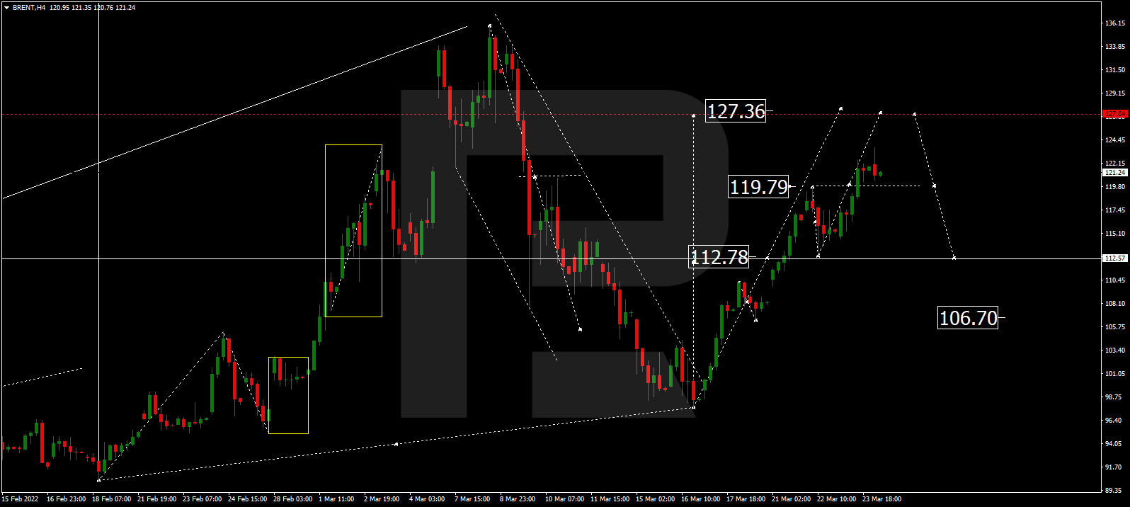 Brent has broken 119.80 and may later continue growing towards 127.40. After that, the instrument may correct down to 112.80 and then resume trading upwards with the target at 142.00.