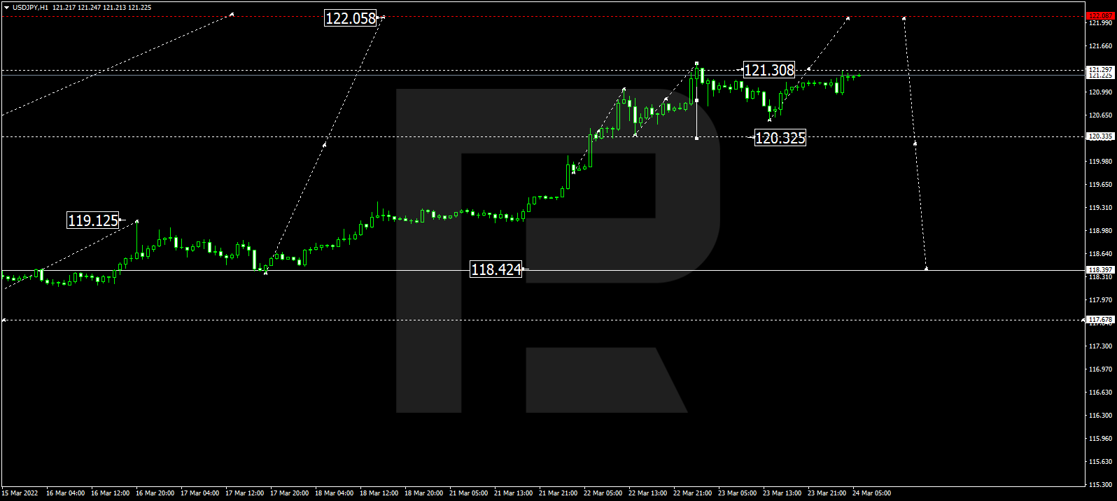 USD/JPY continues growing towards 122.08. Later, the market may start a new decline to break 120.32 and then continue trading downwards with the target at 118.40.