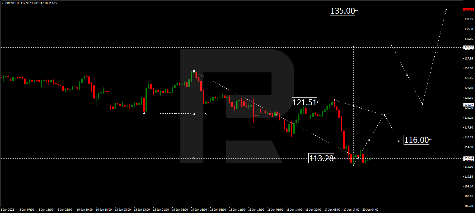 Oil completed a correction at 113.30. Today the market is forming a consolidation range around this level. An escape upwards to 121.50 is expected. With a breakaway of this level upwards, too, the trend might continue to 129.60.