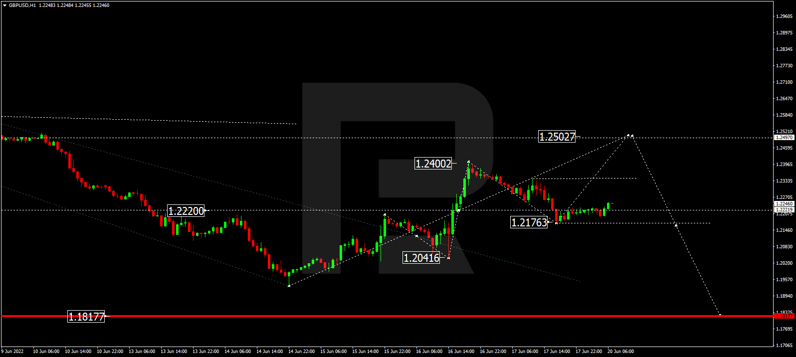 The pair is forming a consolidation range around 1.2222. With an escape upwards, a correctional pathway to 1.2502 will open. Then a decline to 1.2177 will become possible. And after this level is broken away as well, a pathway down to 1.1818 will open. With an escape from the range downwards, the trend might directly continue to 1.1818.