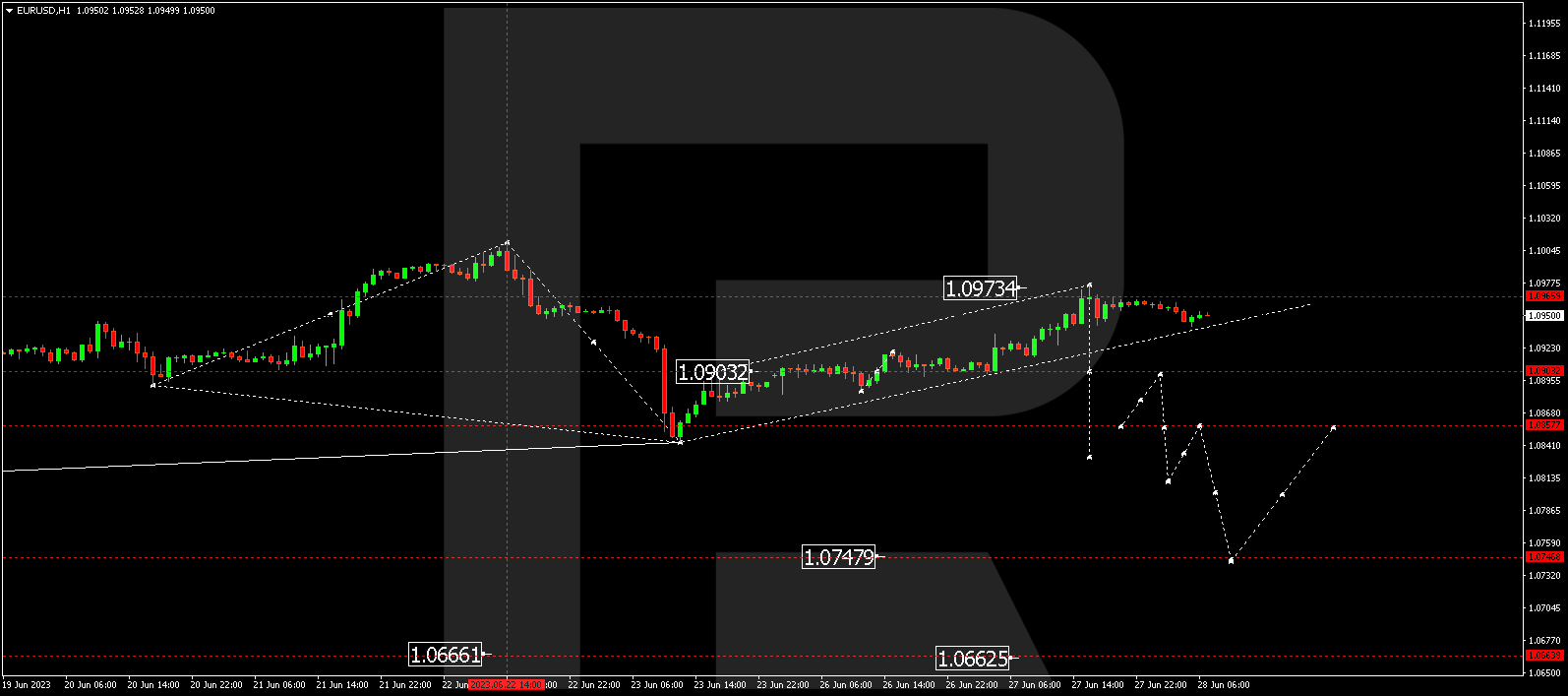 The currency pair has corrected to 1.0970. A decline to 1.0903 is expected today. And if this level also breaks downwards, the potential for a decline to 1.0855 could open, from where the trend might continue to 1.0750.
