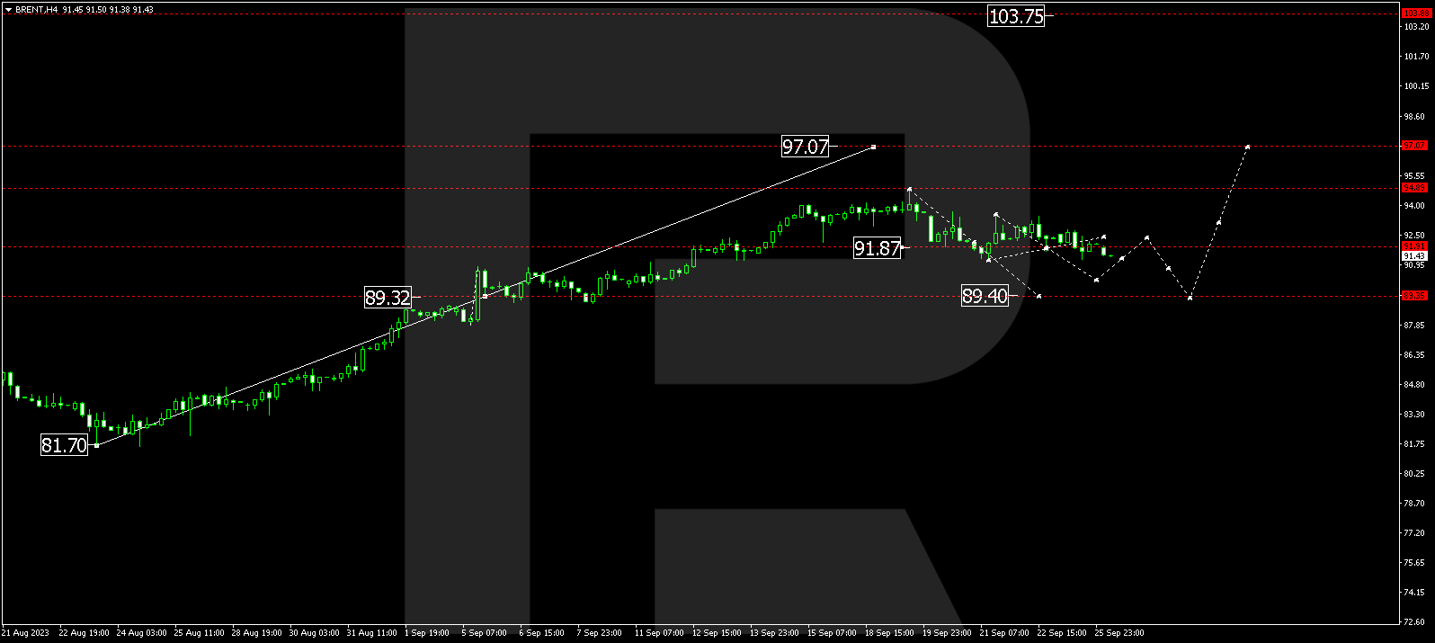 Brent is in a consolidation phase around 91.91. A correction could continue to 89.40 today. Once it is over, an upward movement to 97.07 is expected. This is a local target.