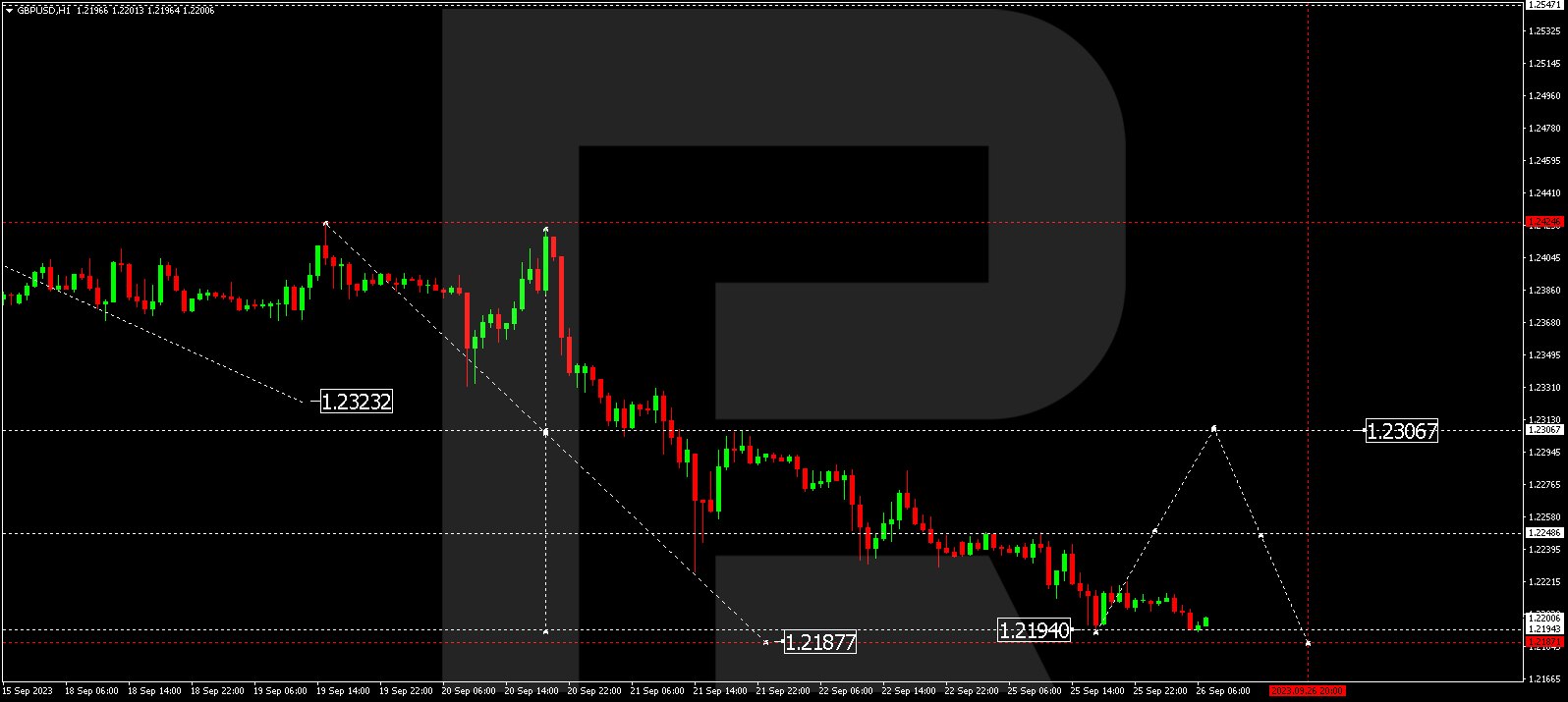 GBP/USD has completed a wave of decline to 1.2194. Today a consolidation range is expected to form above this level. With an upward breakout, a link of correction to 1.2248 (a test from below) could develop, followed by a decline to 1.2150, from where the trend could continue to 1.2000.