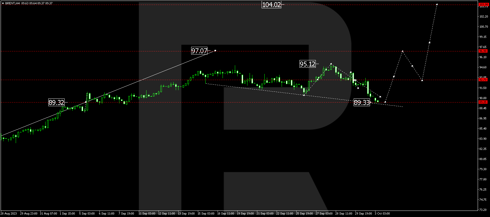 Brent has corrected to 89.33. A consolidation range might form above this level. Escaping the range upwards, the quotes might extend the wave to 96.96. This is a local target. After the price reaches this level, a link of correction to 92.70 is not excluded, followed by a rise to 104.00.