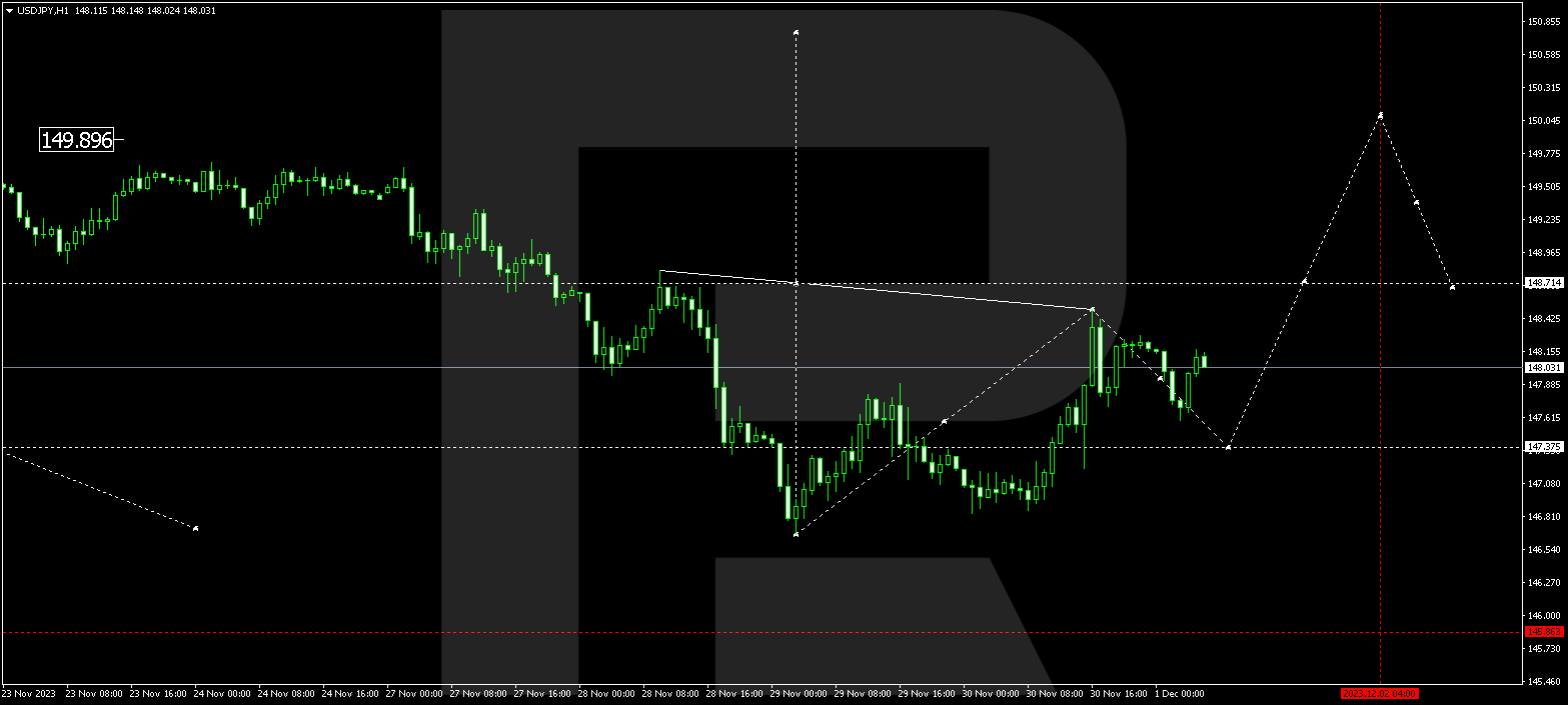 USD/JPY has completed a growth structure to 148.50. A corrective structure to 147.35 is forming today. Once the correction is over, a new growth wave to 148.71 might begin. With a breakout of this level, the potential for a wave to 150.00 might open. This is a local target.