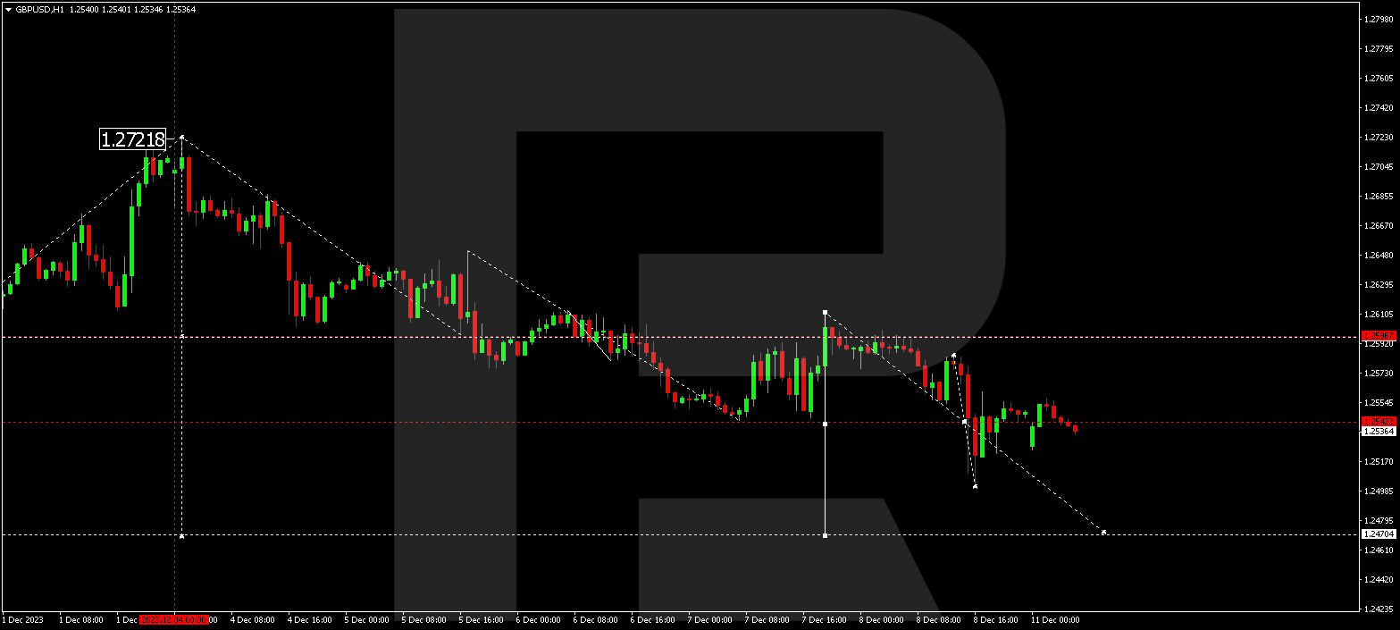 GBP/USD has completed a decline wave to 1.2502. A consolidation range is forming above this level today. An escape from the range downwards to 1.2470 is expected, possibly followed by a correction to 1.2595. Next, the price might drop to 1.2400.