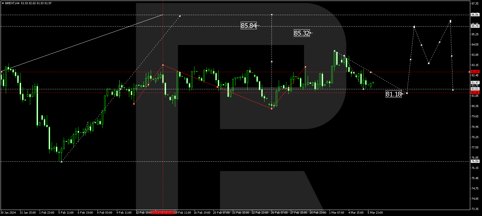 Brent continues developing a correction today, with the target at 81.18. After the correction is over, upward momentum to 85.85 is expected. This is a local target. Next, the price could undergo a correction to 82.70 and subsequently rise to 86.86.
