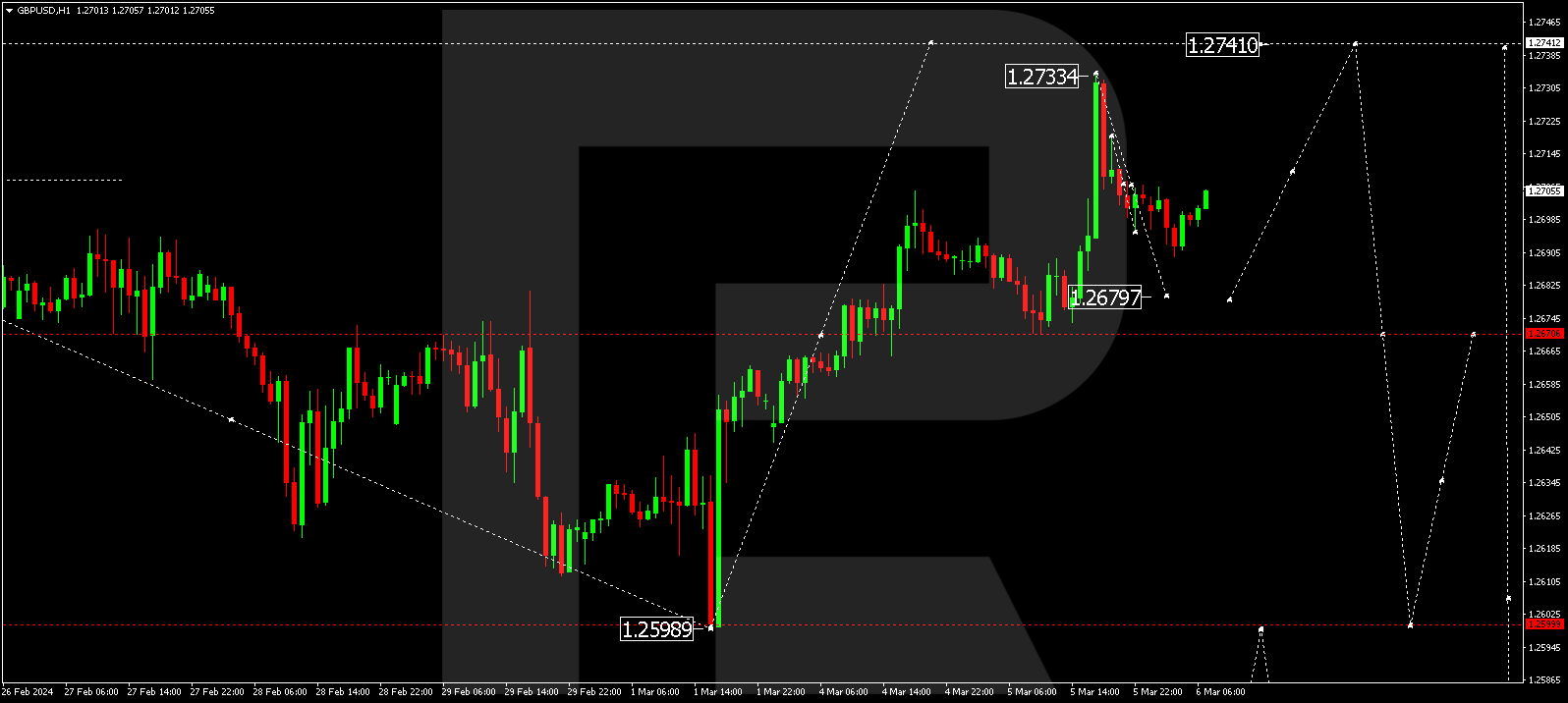 The GBP/USD pair has completed a growth wave, reaching 1.2733. Today a correction towards 1.2679 could occur. After the correction is over, a growth structure to 1.2741 could develop, followed by a decline to 1.2670. This is the first target.