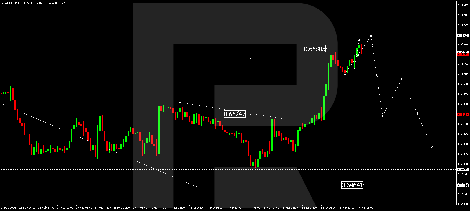 The AUD/USD pair has performed a growth wave to 0.6580. A consolidation range is forming around this level today, probably expanding to 0.6591. Next, a decline wave to 0.6522 might start. This is the first target.