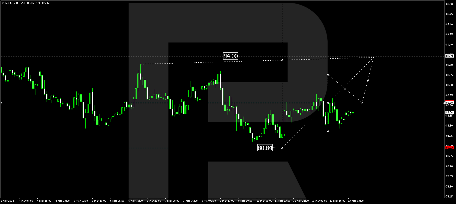Brent is forming a consolidation range around 82.38. A growth link to 84.00 is expected. Once the quotes reach this level, a correction link to 82.40 (testing from above) is not excluded, from which level the trend might continue to 85.85. This is a local target.