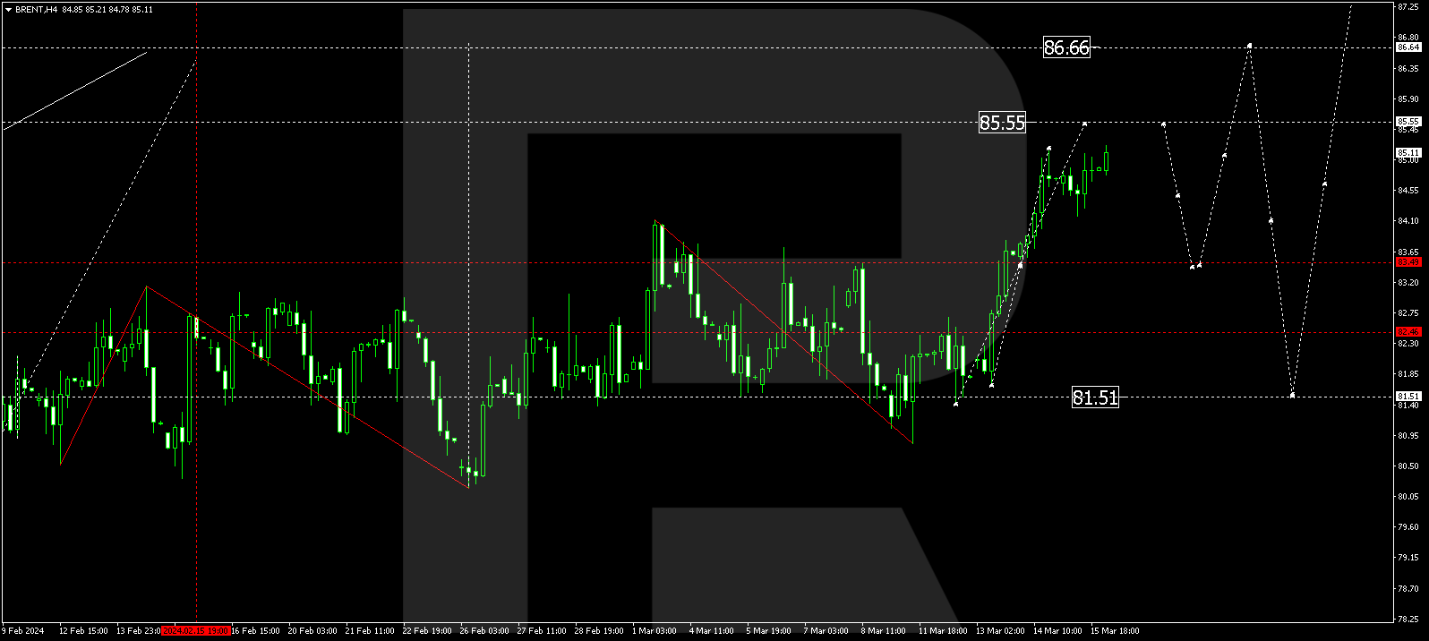 Brent continues developing a growth wave structure to 85.55. This is a local target. Once this level is reached, a correction link to 83.50 (testing from above) is not excluded. Next, a growth wave to 86.66 is expected. This is the first target.