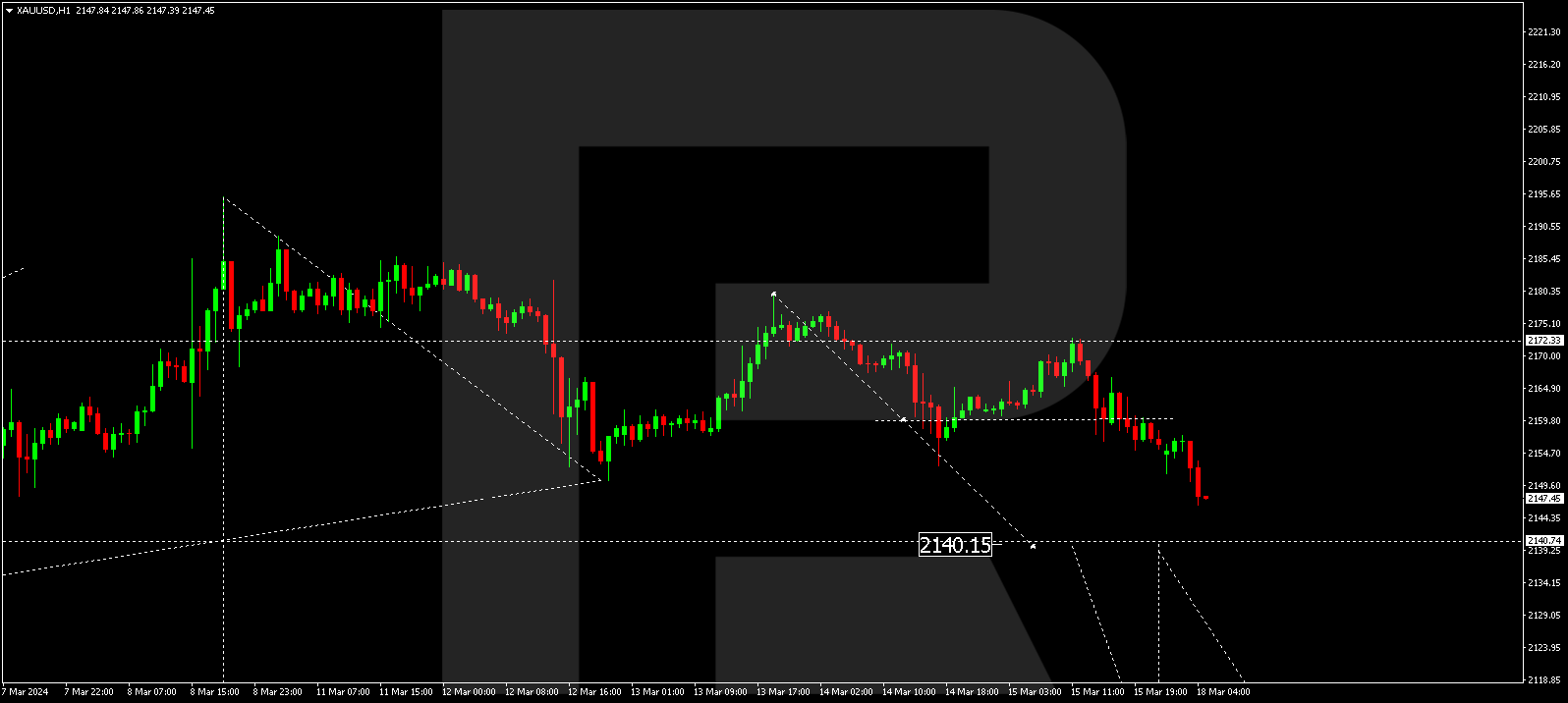 Gold continues developing a decline wave to 2140.70. Once this level is reached, a consolidation range is expected to form around this level. Breaking the range downwards, the potential for a decline wave to 2102.76 might open. This is a local target.