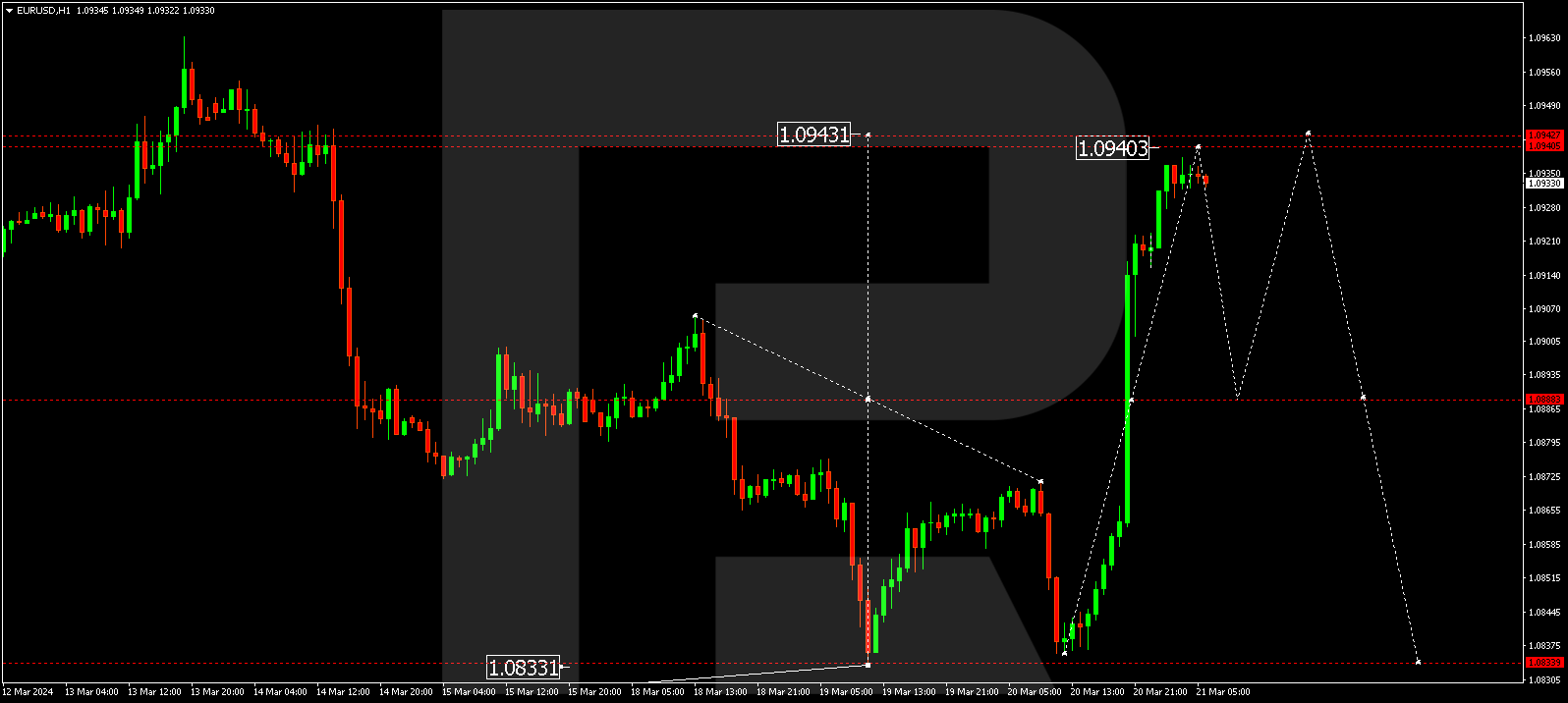 The EUR/USD pair gained support at the 1.0836 level from the news and started developing a correction. A growth link towards 1.0940 could follow. Once this level is reached, a decline link to 1.0888 is not excluded. Next, another correction link to 1.0944 could form. After the correction is over, a new decline wave to 1.0818 might start. This is the first target.