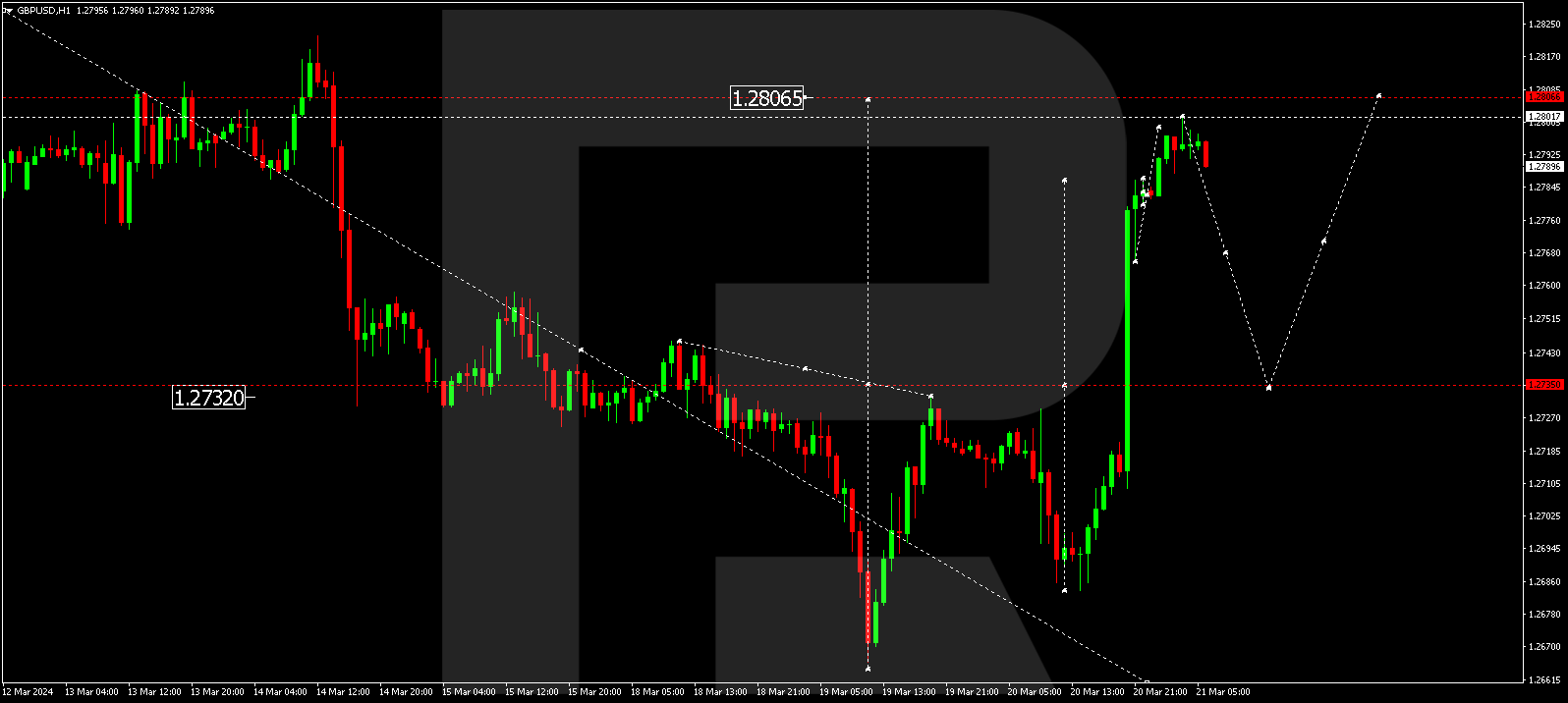 The GBP/USD pair gained support at 1.2684 from the news, and today the market suggests a correction towards 1.2807. Once the correction is over, a new decline wave to 1.2595 might start. This is the first target.