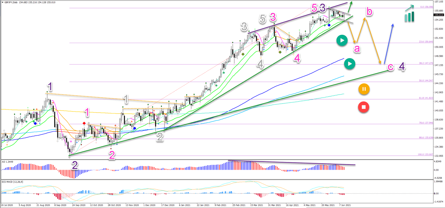 - The GBP/JPY bullish impulse is typical for a wave 3 (purple) impulse: