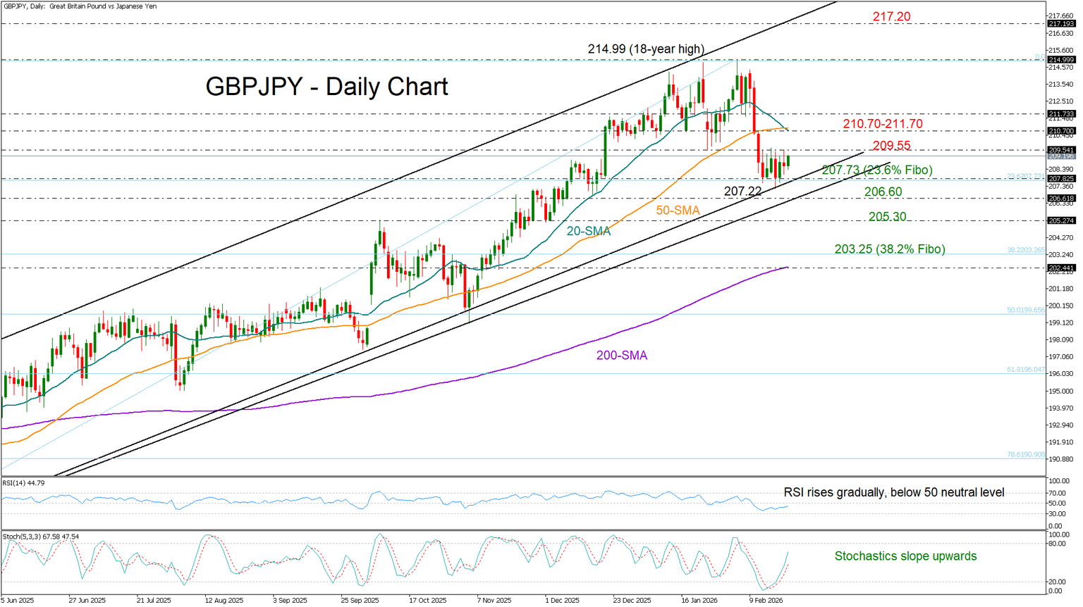 - GBP/JPY stabilizes its decline at the bottom of a bullish channel.