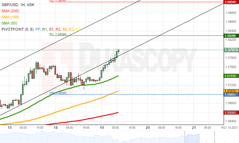 The GBP/USD passed the support of the channel up pattern. However, as the rate approached the 55-hour simple moving average and the 1.3710 level, a recovery began. By the start of Tuesday's European trading hours, the pair had almost reached the 1.3800 mark.