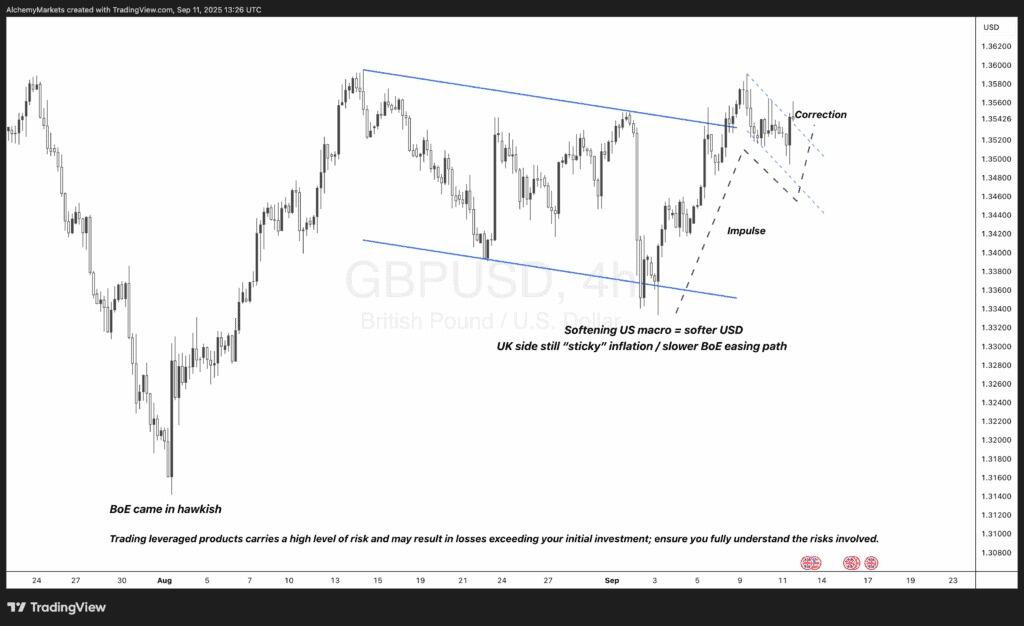 Since then, price action has entered a smaller flag pattern, which is acting as a corrective pause before potential continuation. As long as the pair holds above the 1.3480–1.3500 support zone, the bullish structure remains intact.