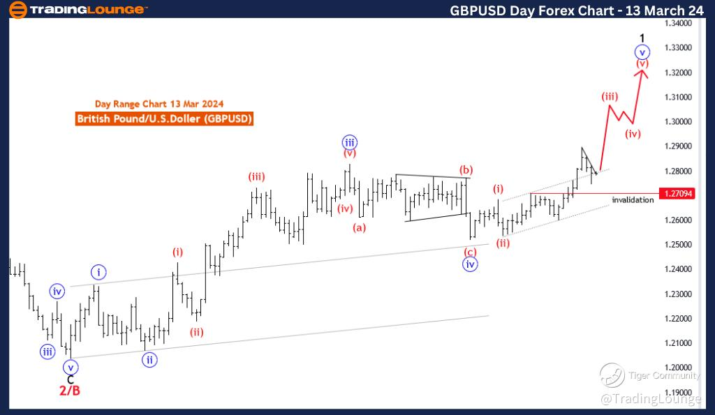 The GBP/USD Elliott Wave Analysis for the day chart on 13 March 24, offers a comprehensive evaluation of potential price movements in the British Pound/U.S. Dollar currency pair, utilizing Elliott Wave principles within the context of technical analysis.