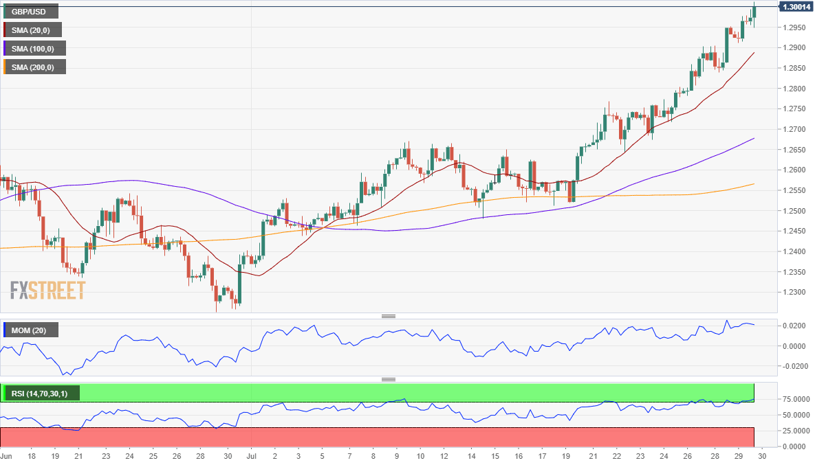 - GBP/USD struggling to extend gains beyond the 1.3000 mark, yet firmly bullish.