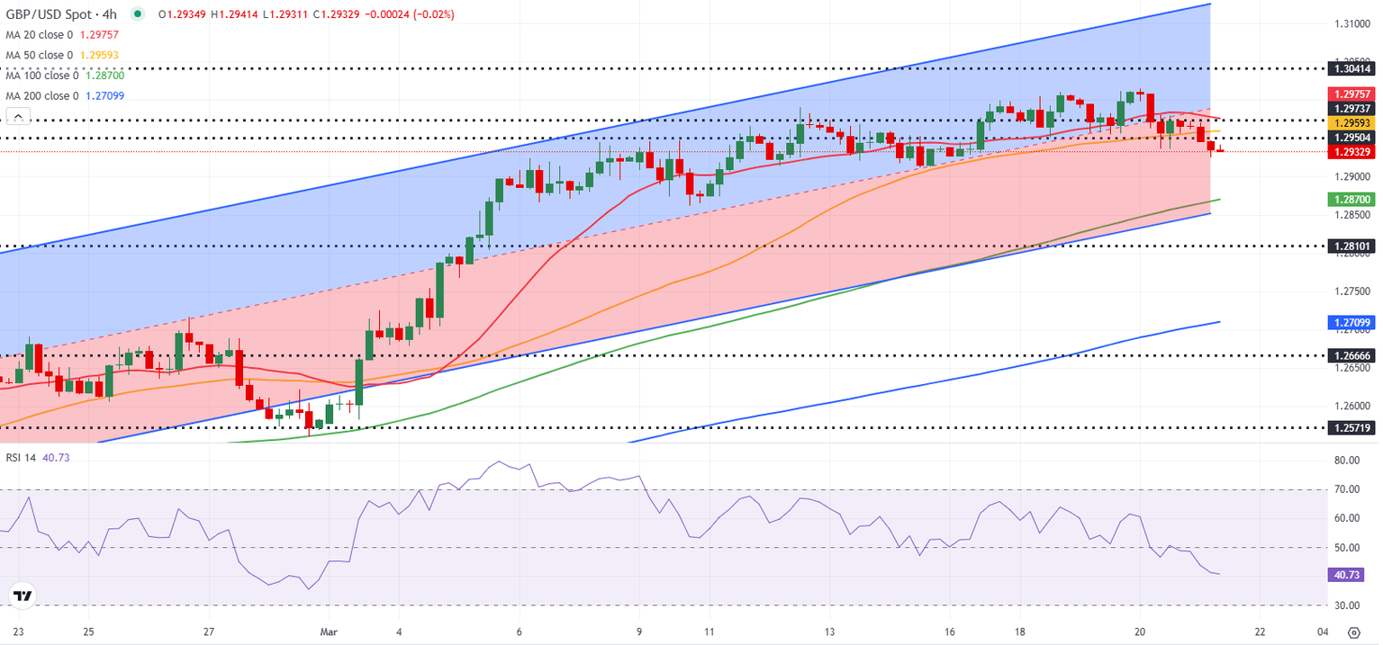 Looking south, first support could be spotted at 1.2900 (static level, round level) ahead of 1.2870 (100-period SMA) and 1.2850 (lower limit of the ascending channel). On the upside, 1.2950 (50-period SMA, static level) aligns as first resistance before 1.2990-1.3000 (static level, round level, mid-point of the ascending channel) and 1.3040 (static level).