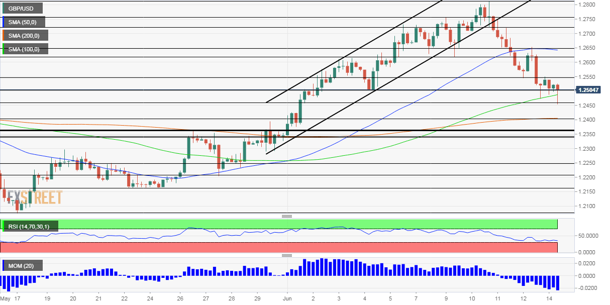 Support is 1.25, a round number that also served as support in early June. Next, the daily low of 1.2455 and 1.24, which is where the 200 SMA hits the price, are the next lines to watch.