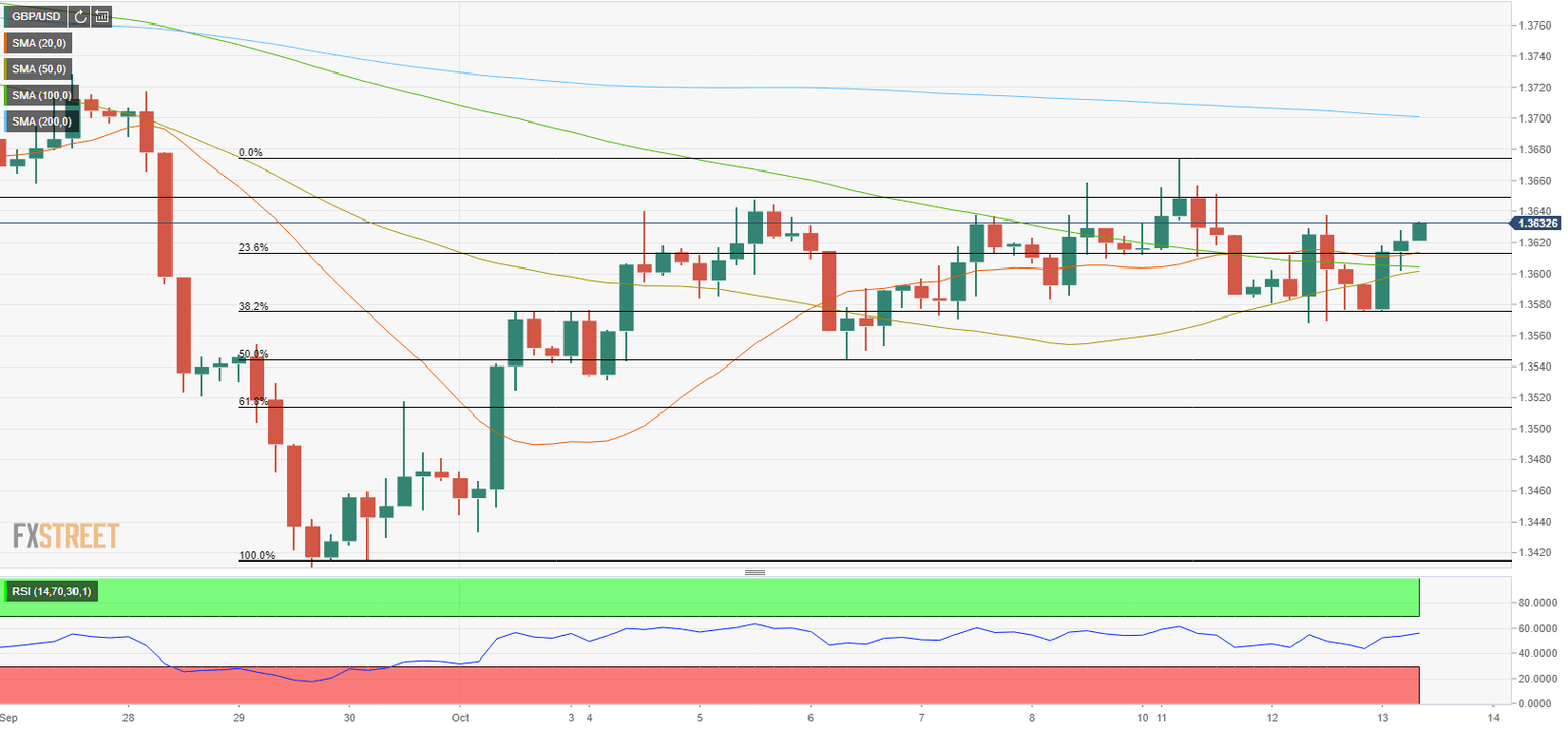 On the upside, the first resistance emerges at 1.3650 (static level) ahead of 1.3675 (October 11 high) and 1.3700 (psychological level, 200-period SMA).
