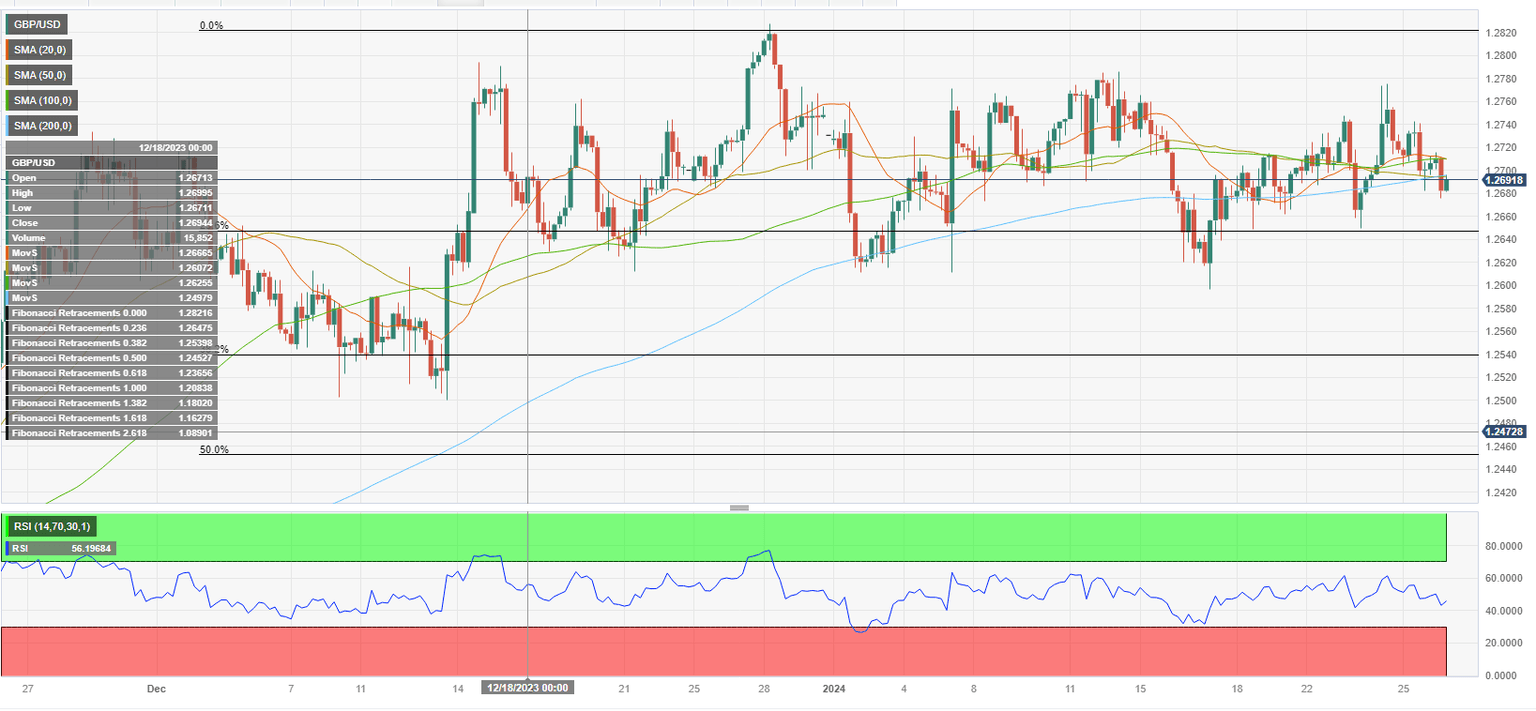 The 200-period Simple Moving Average (SMA) on the four-hour chart aligns as a pivot level at 1.2700. If GBP/USD continues to use that level as resistance, technical sellers could remain interested. In this scenario, 1.2650 (Fibonacci 23.6% retracement of the October-December uptrend) and 1.2600 (psychological level, static level) could be seen as next bearish targets.