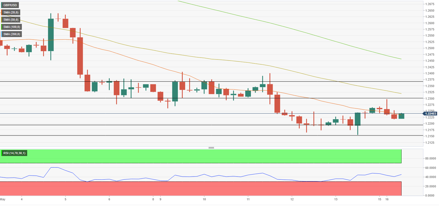 The Relative Strength Index (RSI) indicator on the four-hour chart stays below 50 and GBP/USD is trading near the 20-period SMA, showing that the pair is struggling to gather recovery momentum. On the upside, 1.2300 (static level, psychological level) aligns as first resistance before 1.2330 (50-period SMA) and 1.2370 (static level).