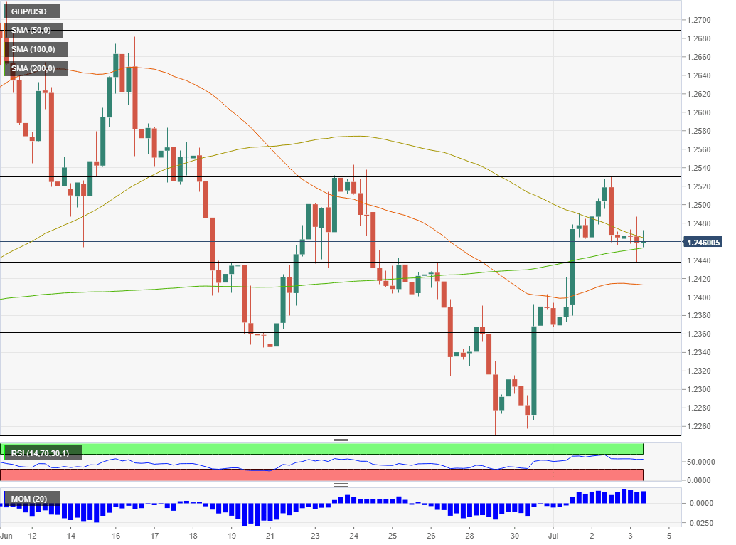 Support awaits at the daily low of 1.2440, followed by 1.2360, which was a stepping stone in the recent recovery. The trough of 1.2250 is a strong support line.
