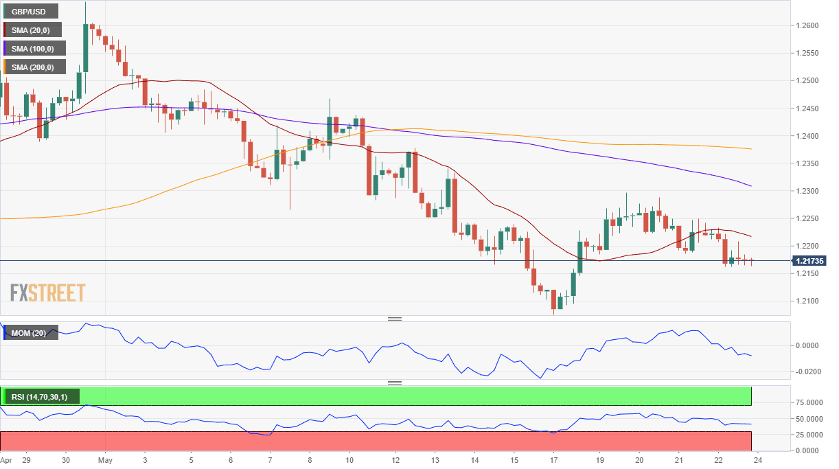 The GBP/USD pair is poised to extend its decline, according to technical readings in the daily chart, as the pair is developing below all of its moving averages, with the 20 SMA turning lower and providing dynamic resistance at around 1.2330. Technical indicators in the mentioned time-frame remain within negative levels, the RSI supporting further declines by heading firmly lower at around 40. In the shorter-term, and according to the 4-hour chart, the technical picture is quite alike, as the pair is developing below bearish 20 SMA, as technical indicators remain well into negative ground, with uneven bearish strength yet no signs of downward exhaustion.