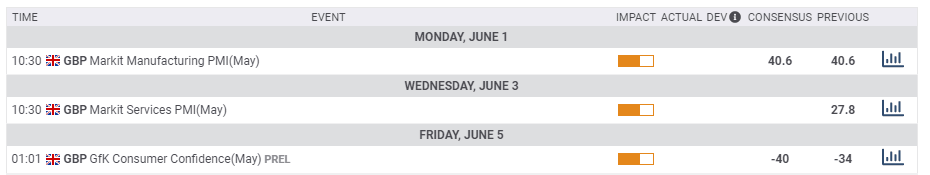 GBP/USD cannot complain about the lack of volatility – albeit things are becoming more complex. Politics, including Brexit, is growingly competing with coronavirus headlines from both sides of the Atlantic and eventually sent cable higher on the week, but lower on the month. The first week of June consists of top-tier US publications and an even more significant role for Brexit.